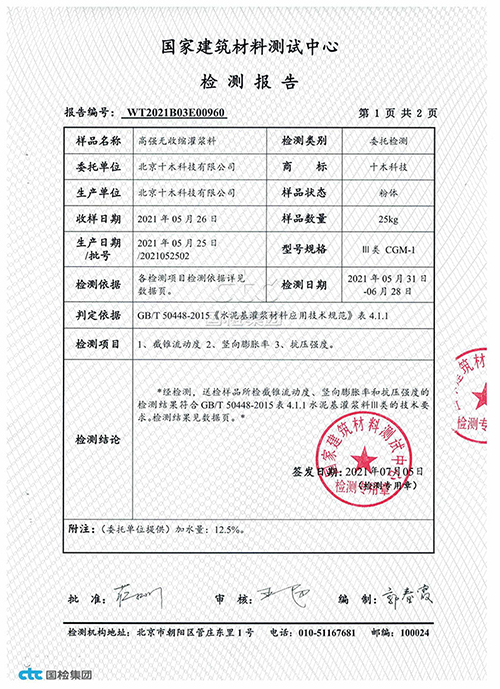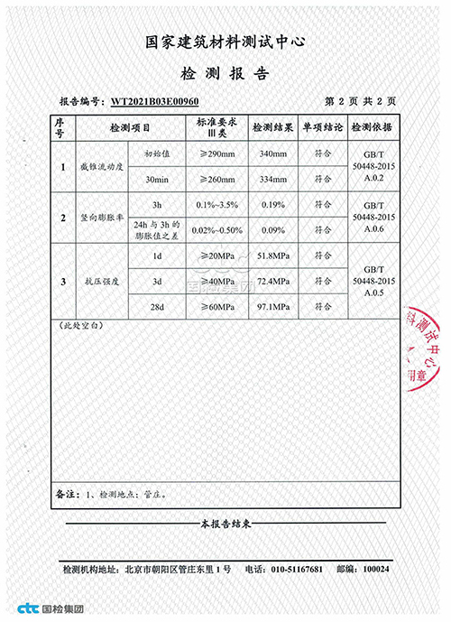 通用型灌漿料檢驗報告